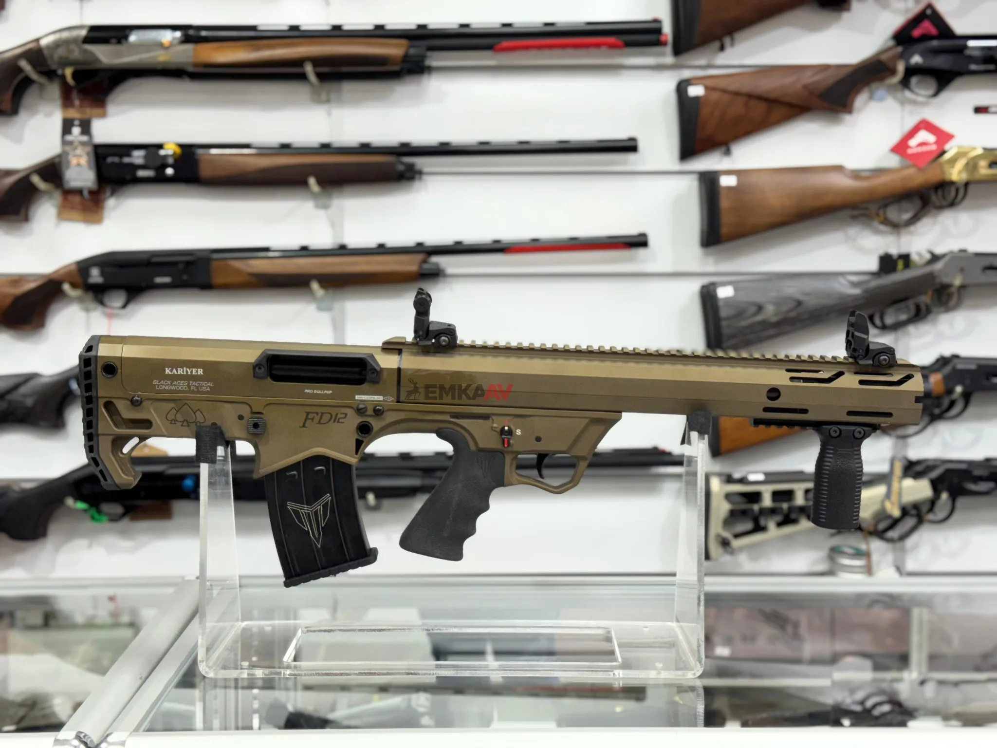Kariyer FD12 Bronz Bullpup, kompakt yapı ile pompalı sistemin gücünü birleştiren şarjörlü bir av tüfeğidir. Bullpup tasarımı sayesinde namlu uzunluğundan ödün vermeden toplam boy kısaltılır, bu da sahada hareket kabiliyetini artırır. 12 kalibre fişek uyumu, şarjörlü besleme sistemi ve AR platformunu andıran modern görünümüyle hem sportif atışlarda hem de avcılıkta etkili bir çözümdür. El kundağında ve üstte yer alan Picatinny raylar, optik ve aksesuar montajına olanak tanır.